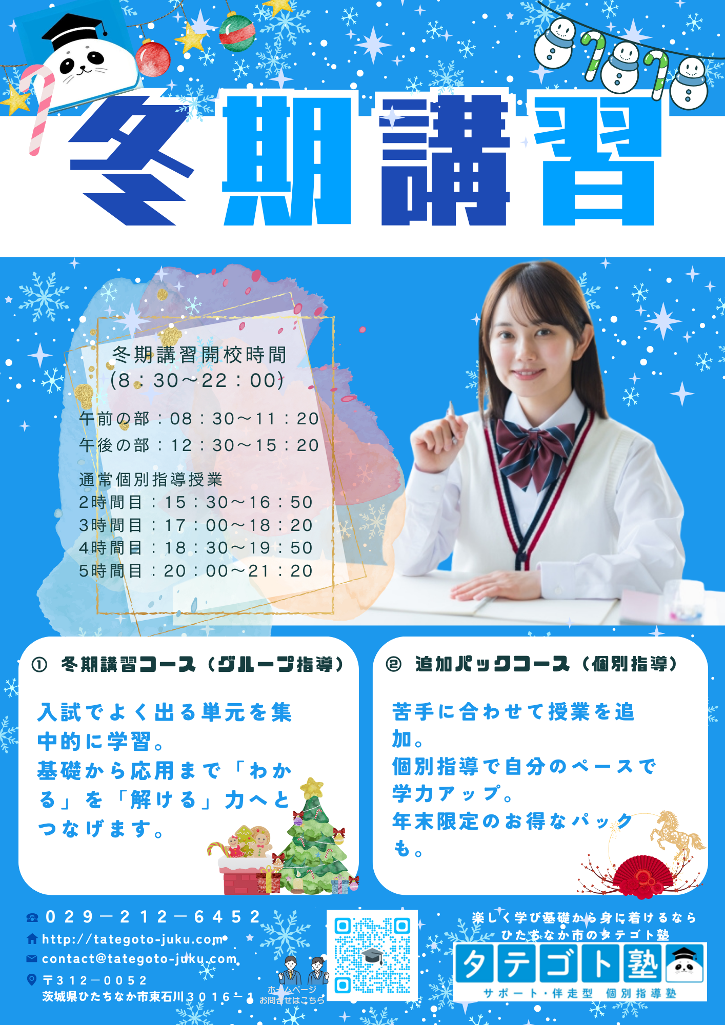 ~ サポート・伴走型 個別指導塾 タテゴト塾 ~ アザラシがイメージキャラクターのひたちなか市の学習塾 タテゴト塾 小学生 中学生 高校生(数学+ICT) お問い合わせ 受験本番に向けて~ 冬期講習スタート♪ 5月 ゴールデンウイーク 休校日のお知らせ 5月(GW)は下記、休校日とさせていただきます。授業のある生徒さまは授業のお振替をお願いいたします。・休校日:5月3日(土)~6日(火) [ TATEGOTO-JUKU ] ひたちなか市の兄弟がつくったサポート・伴走型 個別指導塾 楽しいから、成績もあがる 生徒のベストを引き出し、夢に向かって頑張る! 勉強についてこんなお悩みはありませんか? お子さま ✓勉強の仕方が分からない✓成績が上がらないから楽しくない✓部活や他のことに熱中したいから今はやる気になれない 保護者さま ✓普段から勉強している様子がない✓成績が上がらなくて心配だ✓仕事が忙しく、勉強を見てあげられない そんな子たちも、講師と共に勉強して、 自主的に勉強できるようになり... 高校一般入試の受験生一人平均 120点UP! 多くの生徒さまが80点UP! 3ヶ月で153点UPした生徒も! ※5科目の合計点数(講師実績) タテゴトクジュク たてごとじゅく tategotojuku tategoto-juku ひたちなか市 水戸市 学習塾 個別指導塾 講師 塾講師 アルバイト 個別学習塾 家庭教師 茨城県 那珂市 水戸 mito 中学生向け 小学生向け 高校生向け 大学受験 高校受験 生徒募集 自習室 登校拒否 地域密着 地元 割引 安い 格安 激安 atama plus atama+ アタマプラス 頭プラス あたまぷらす 受験 志望校合格 合格 予備校 城南 森塾 教室 学習空間 hitati 日立 啓明 高等学校 高校 茨城キリスト教 いばきり イバキリ 常磐 ときわ トキワ 水戸女子 水城 葵陵 短期 赤本 ICT AI 講師募集 正社員 明光義塾 成績 アップ 塾 やる気スイッチ 一会塾 ONE スクールIE スクール スクパス 緑岡 水戸第一 水戸第二 水戸第三 茨城大学 茨大 起業 自主性 桜ノ牧 実績 だから勉強に自信が出る!! タテゴト塾の3つの特徴 TATEGOTO-JUKU 徹底的サポート・伴走型個別指導 生徒一人ひとりの軸を探り、それぞれに合ったペースで細やかにサポートする徹底的伴走型個別指導。「勉強の仕方がわからない」という子に対して親身に考え、その子にあった勉強の入り口を提案いたします。進学・志望校合格への伴走はもちろん、学校の授業になかなかついていくのが難しい、もっと自信をつけたいと感じる生徒・保護者様にも、それぞれに本気で寄り添い、一緒に解決していきます。勉強の楽しさ、乗り越えることの素晴らしさを感じ、学ぶことで目標達成の楽しさを感じていただけます。 生徒・先生で共に目標に向かう タテゴト塾では、勉強しなさい、と押し付けることはありません。先生と生徒が一緒になって小さな目標設定を繰り返し、目標に対する道筋を見つけていきます。 追加授業も受けやすい料金設定 タテゴト塾では1コマあたりの追加料金をシンプルで安価に設定しております。必要に応じて増やしやすい料金設定で、もっと知りたいという気持ち、目標達成に全力で寄り添います。 それぞれの目的や希望に合わせた授業を行います! 対象 基本の教科に対応 【小学生】【中学生】【高校生】平日は22時までだから部活帰りでも通いやすい! 週の授業数 自由に組み合わせられる 推奨:【週1回】【週2回】【週3回】1コマ 80分 ・ 60分 ◎目的や希望に合わせて必要なカリキュラム・授業数をご提案させていただきます。 +個別指導の追加授業 必要に合わせて 受検・定期テスト・夏期講習・冬期講習など目的へのスケジュールを立て、授業の進捗状況に応じ気軽に追加授業をお申込みいただけます。スマホ・PCにて簡単にお申込み可能です。 選べる授業の形 個別指導 一人一人勉強の仕方を学ぶ 小学生・中学生国語、数学(算数)、英語、理科、社会 復習・予習パラレル授業高校受験・中学受験対策ほか ◎小学生 60分 週1回コース月額11,200円(税込)~ ◎中学生 80分 週1回コース月額14,500円(税込)~ 個別指導について グループ指導 個別指導と組合せで総合的アプローチ 小学生・中学生国語、数学(算数)、英語、理科、社会 英単語・漢字・計算・語彙ほか小学生はタブレット基礎学習をゲーム感覚で 小学生『基礎学力育成道場』3,000円(税込)~(パック特別価格) 中学生『理・社・国パック』3,000円(税込)~(パック特別価格) グループ指導について 受験生向けサポート伴走コース 万全のサポートで目標に向かう 個人個人の学習傾向をみて、ゴールを定めて戦略を立てる 英語リスニング、英語長文、国語総合、過去問演習 ほか 料金について詳しく 当塾は、自分に合った勉強法で楽しく成長を実感できる学習塾です TATEGOTO-JUKU タテゴト塾は、ひたちなか市・水戸市エリアの小中学生・高校生を中心に、サポート・伴走型個別指導を行っている学習塾です。勉強を強要することはなく、その子に合わせた勉強方法を提案することで「勉強が楽しくなる」「目標達成の道筋が分かる」指導を行っております。一緒になって勉強に向き合うこと